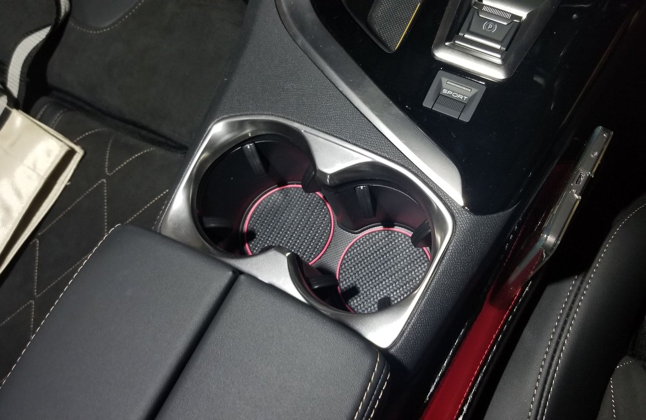 商品には『ドリンクのカタカタ音防止に』と書かれていましたが、カタカタ音は別に気にならないのです。3008のセンターのドリンクホルダーは、ホールド機能が付いているのでドリンクを入れてもカタカタ動かないんですね。しかし、このシートを敷くことによって汚れが目立ちにくくなるし、見た目もちょっと良くなると思いまして。